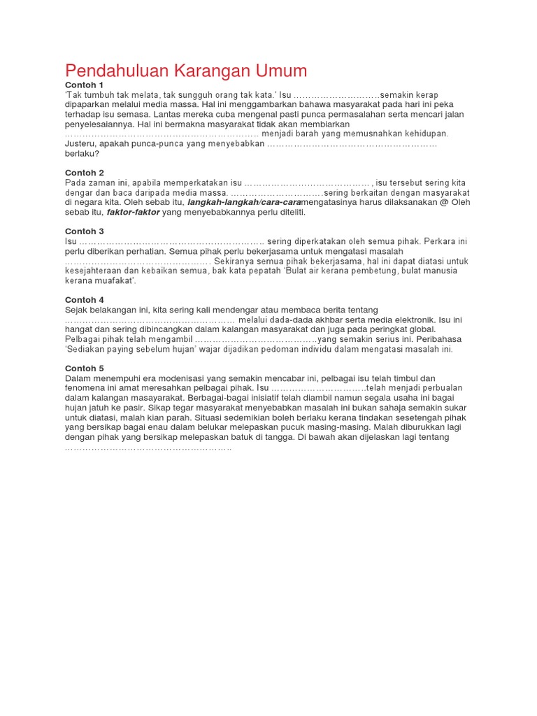 Anda boleh menggunakan contoh karangan di bawah sebagai panduan untuk membantu dalam. PENANDA WACANA UNTUK AYAT TERAKHIR PENDAHULUAN KARANGAN Oleh itu kebaikan dan keburukan yang mewarnai fokus perbincangan akan dihuraikan dengan terperinci demi kebaikan bersama. Namun banyak orang yang sudah sering membaca artikel namun belum mengetahui apa yang dimaksud dengan artikel dan berbagai hal yang berkaitan dengannya.